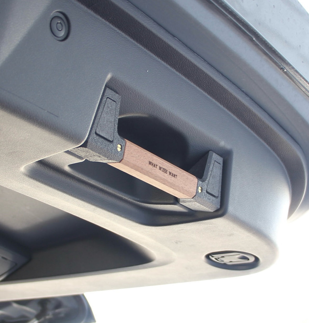 ミツビシ現行デリカD5のテールゲート/Bピラーサブアシストグリップ部を、木と3Dプリンターパーツを組み合わせたカッコイイグリップに交換するカスタムパーツになります。