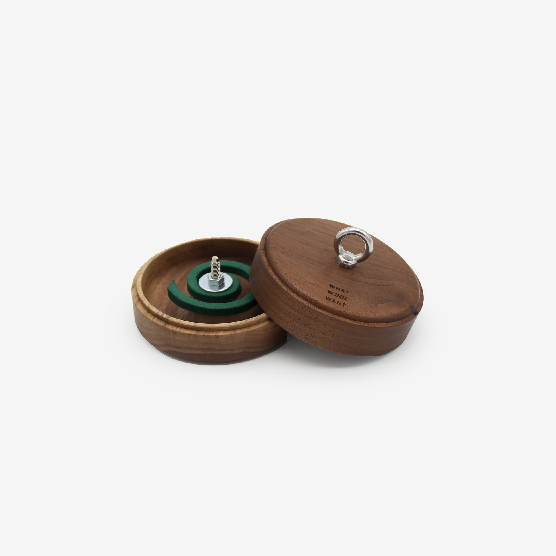 お椀型のプレートに加え上蓋が付いた新しいタイプの小さい蚊取線香ホルダーです。蚊取線香を上下から挟み込むことによって、直接中が見えにくく、上品でスタイリッシュな仕上がりに。風で灰が舞い上がる心配も軽減され、幅広いシーンでの活躍が期待できます。中央のリングはカラビナをつけて吊るしたり、ロープに通すなどしてお使いいただけます。火を消す際は、そのまま蓋を閉めて置いておくだけで大丈夫です。