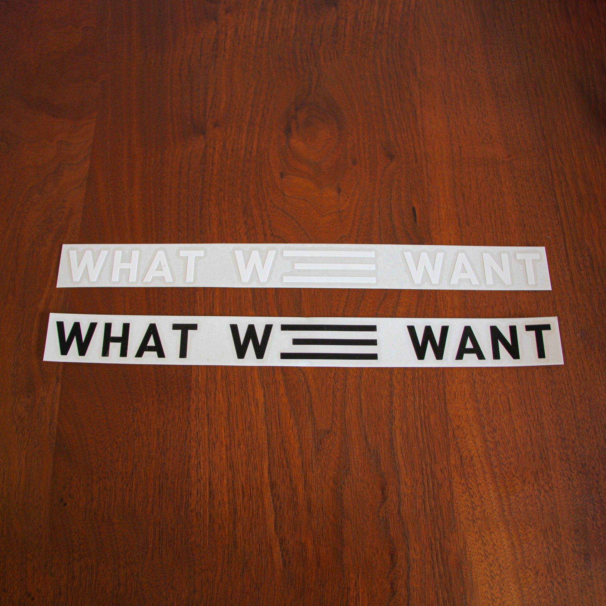 WHAT WE WANTのLサイズ横型タイプカッティングステッカー。 車のガラスやギアに貼ってお使い下さい。